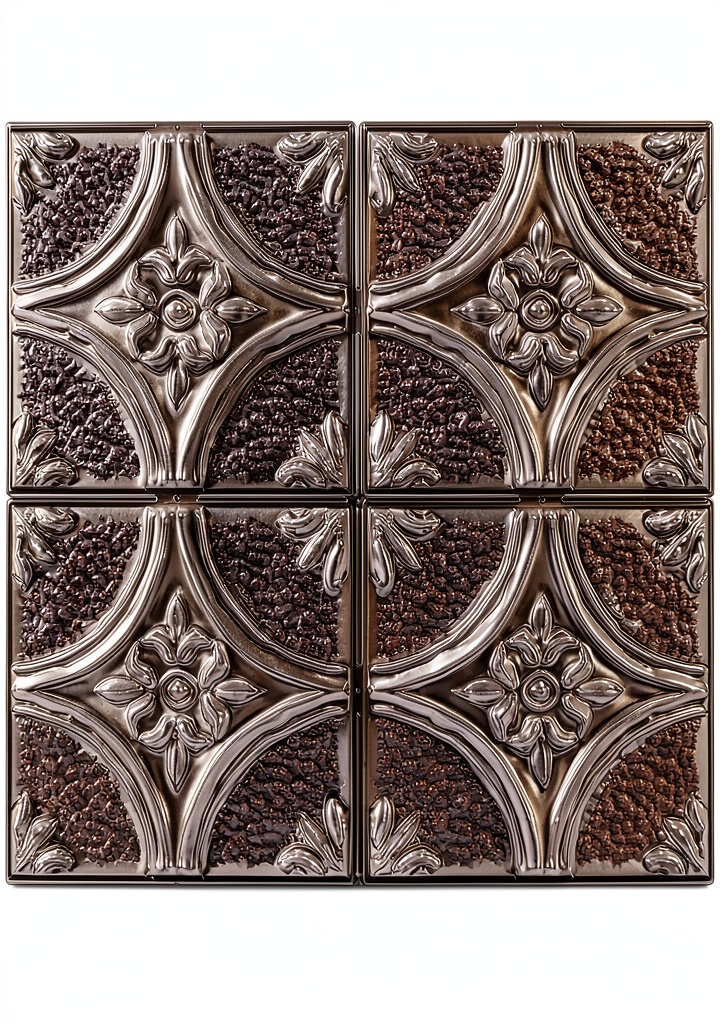 Enhance your kitchen with the WallPops silver tin peel and stick backsplash tiles, designed for effortless installation and lasting beauty. Crafted from durable tin with a textured antique finish, these 10×10 inch tiles feature a high-shine silver color and botanical pattern, adding elegance to any space. Each package includes four tiles, covering 3.06 square feet, and they are moisture resistant with heat-resistant properties up to a safe distance above stoves. With a square edge and 0.04-inch thickness, these tiles are easy to handle and ideal for DIY enthusiasts looking to upgrade their home decor without complex tools.